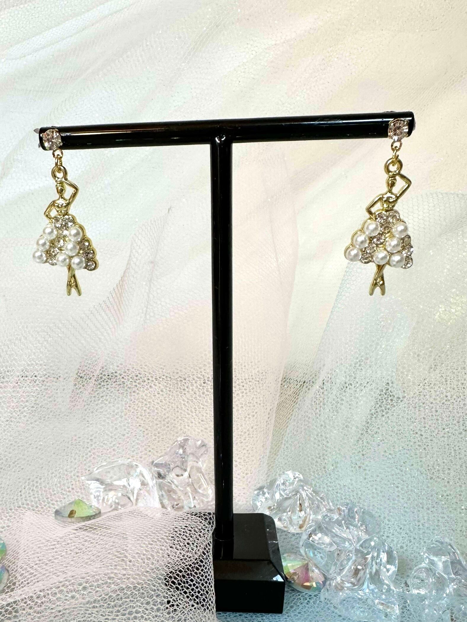 雪のようなパールのロマンチックチュチュを身につけたバレリーナのピアス