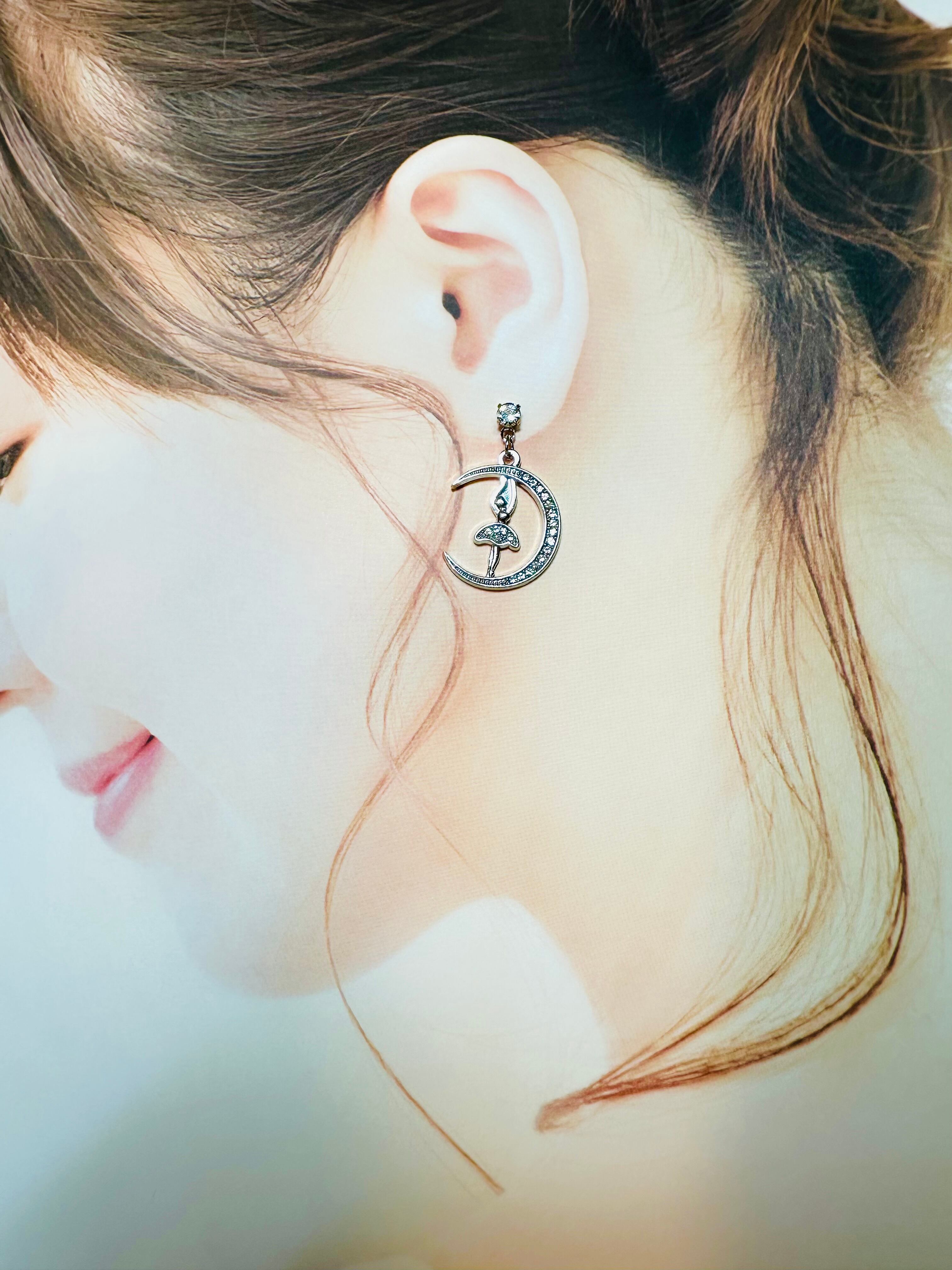 ポスト部分がラインストーン、シルバーの月で踊るバレリーナピアス