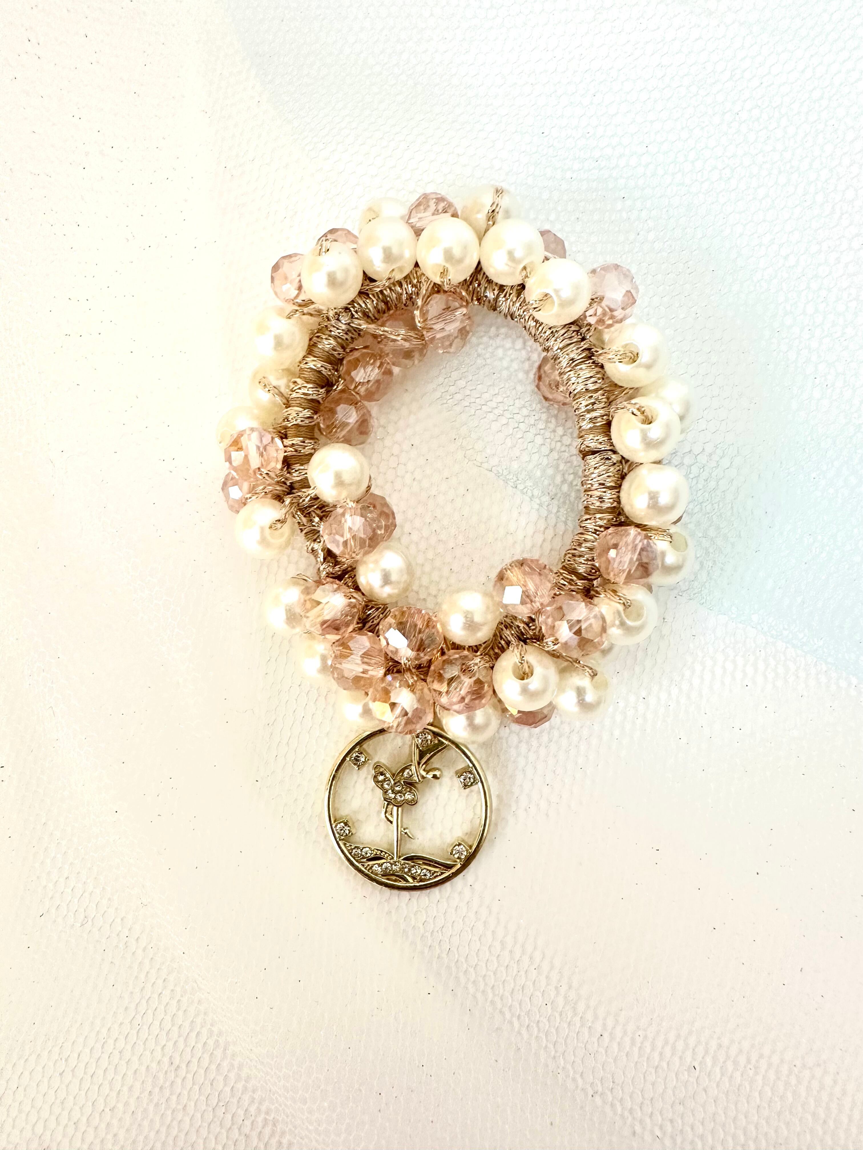 商品名:パールピンクガラスビーズヘアゴム月の女神シリーズB